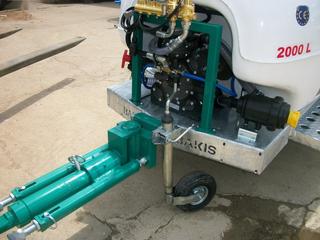 Τουρμπίνα 2000 λίτρα, με αντλία COMET APS 145, φτερωτή φ80, πύργους με 20 μπέκ, σπαστός ομοκινητικός σταυρός τ60 Ιταλίας, σπαστό τιμόνι μηχανικό τ45, ηλεκτρονικό μπρούτζινο χειριστήριο 3 παροχών, φίλτρα μπρούτζινα πριν τα μπέκ, μουαγέ φ60-400, λάστιχα 10-75-15,3 14λινα, φώτα τρίγωνα, ποδαρικό με ρόδα. ΒΥΤΙΟ ΠΟΛΥΕΣΤΕΡΙΚΟ.
